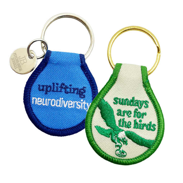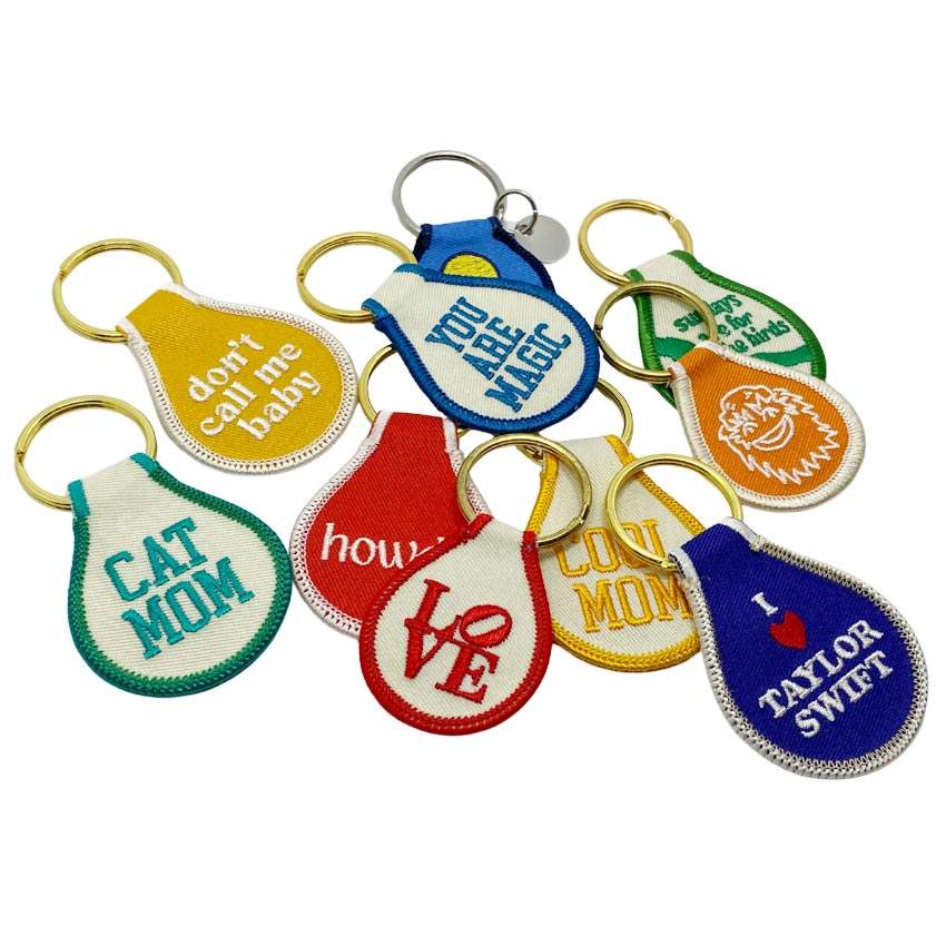 Manufacturer Custom logo Twill Fabric Keyring Embroidered Patch Keychains