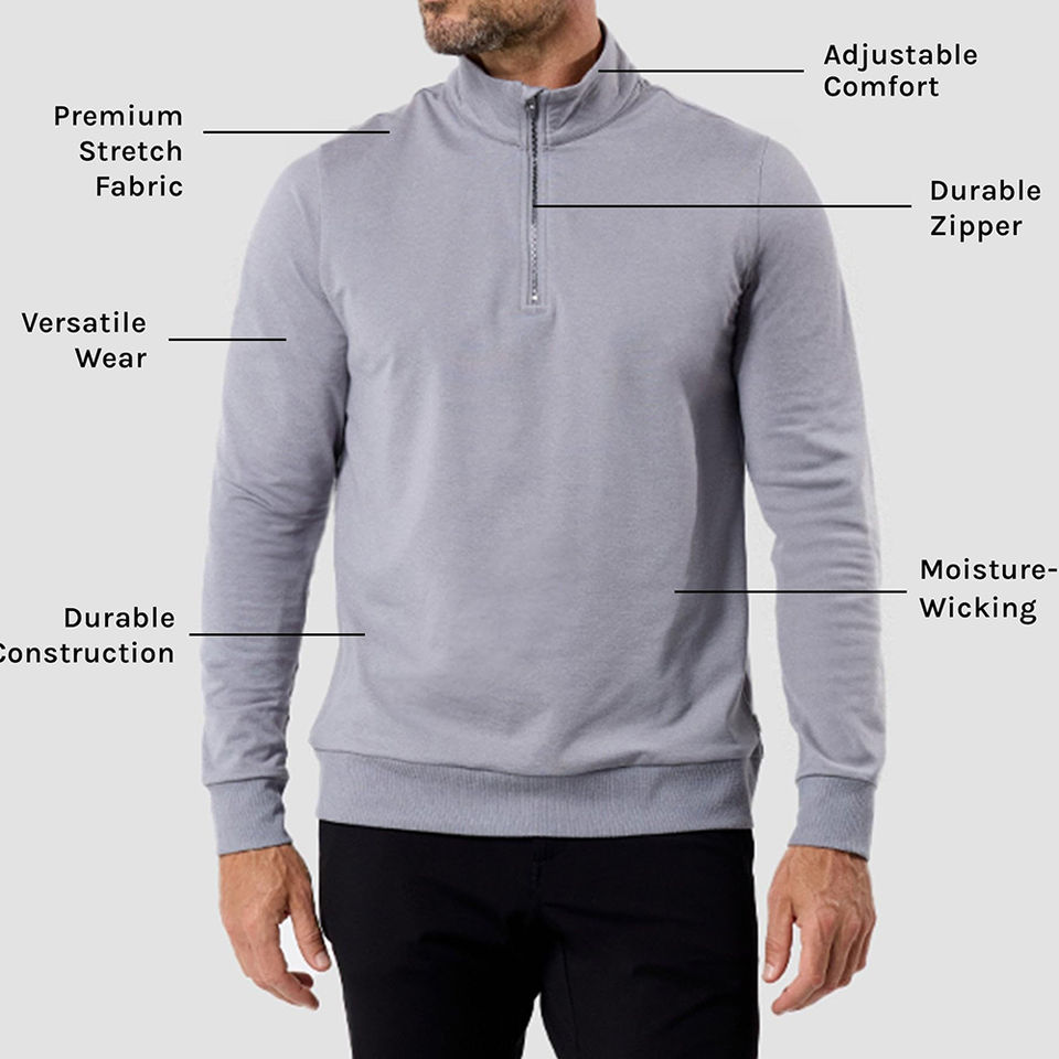 Manufacturer Customization Half Zip Pullover Quarter Sweatshirt Men's Cotton Blended Blank Half Zip Knitted Sweatshirt For Sale