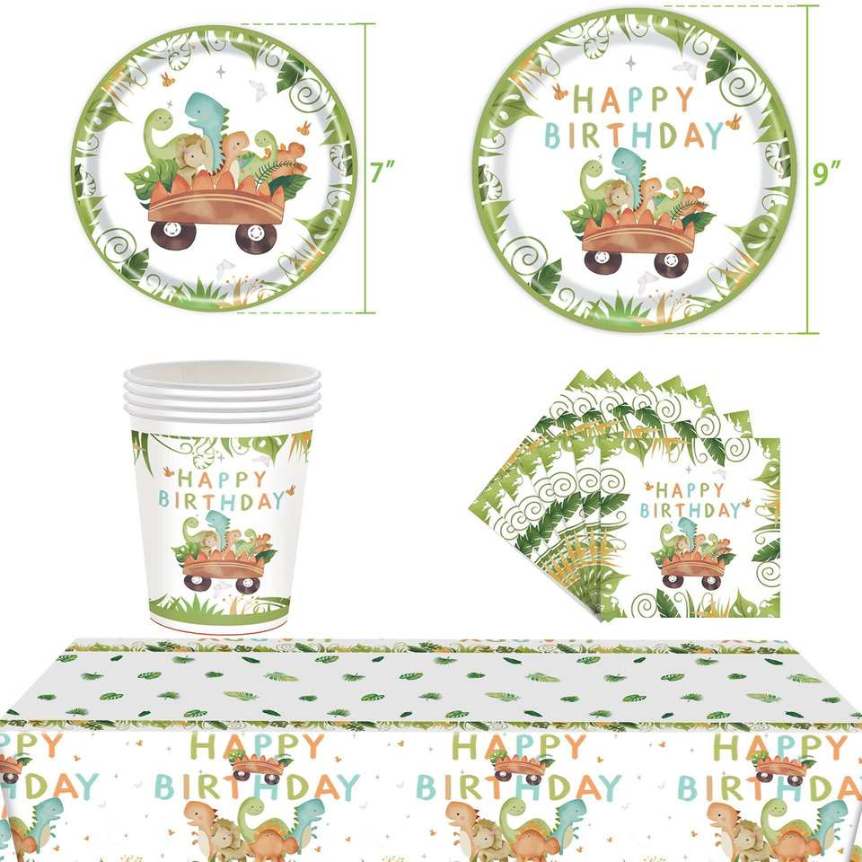 Manufacturer Customize Logo Pattern And Size Of Paper Cups Disposable Cup Plate Tablecloth Natural Cartoon Party Supplies Set
