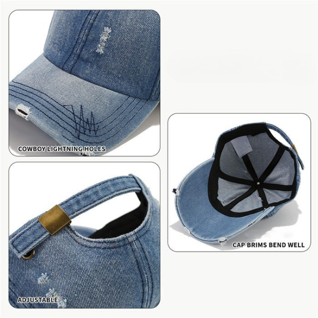 Manufacturer Customized Adjustable Curved Brim Waterproof Denim Baseball Cap Embroidered Logo Sporty Unisex 6 Panel Baseball Hat