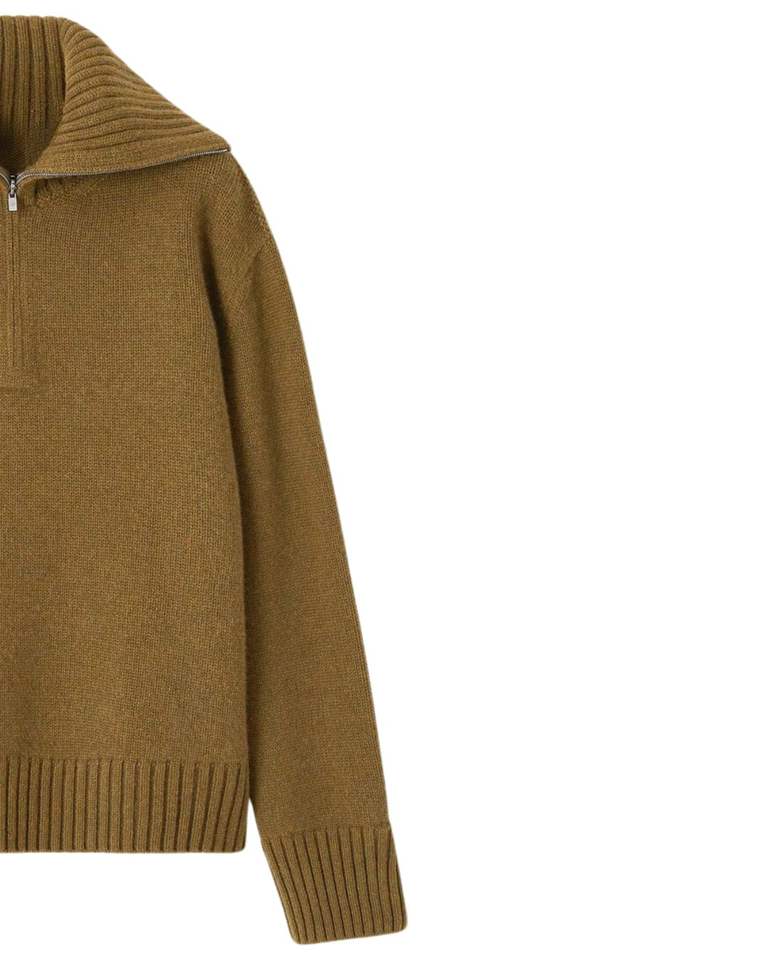 Manufacturer Customized Mens Quarter Zip Knit Sweater Olive Brown Solid Knit High Collar Warm Winter Casual Pullover OEM Custom