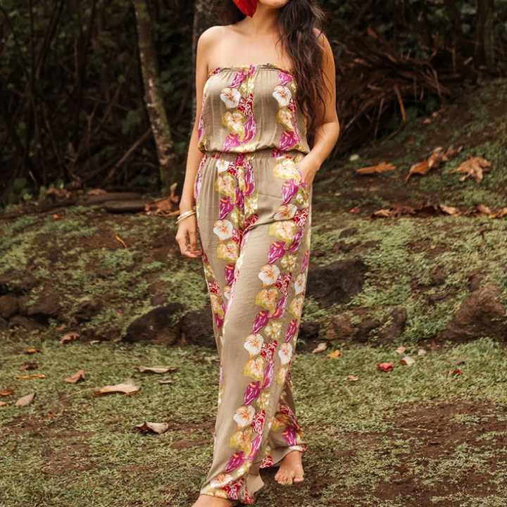 Manufacturer Design Loose Fit Women Hawaiian Print Bandeau Jumpsuit Romper Custom Made Rayon Jumpsuit