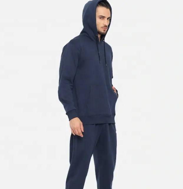 Manufacturer Direct Wholesale Breathable Cotton Fleece Hooded Sweatsuits Men Navy Blue Custom Logo Plus Size Winter Tracksuits
