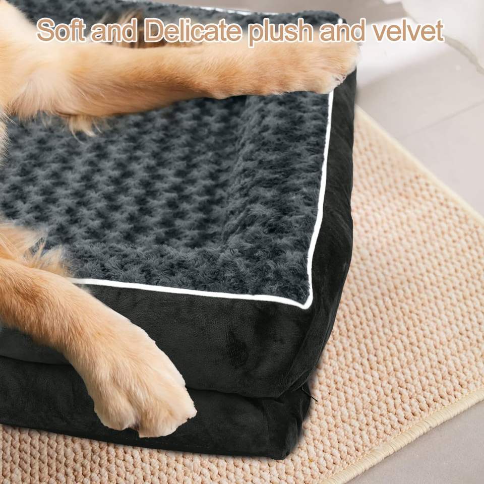 Manufacturer Dropshipping Large Removable Washable Dark Gray Plush Dog Beds Luxury Deluxe Orthopedic Pet Bed With Accessories