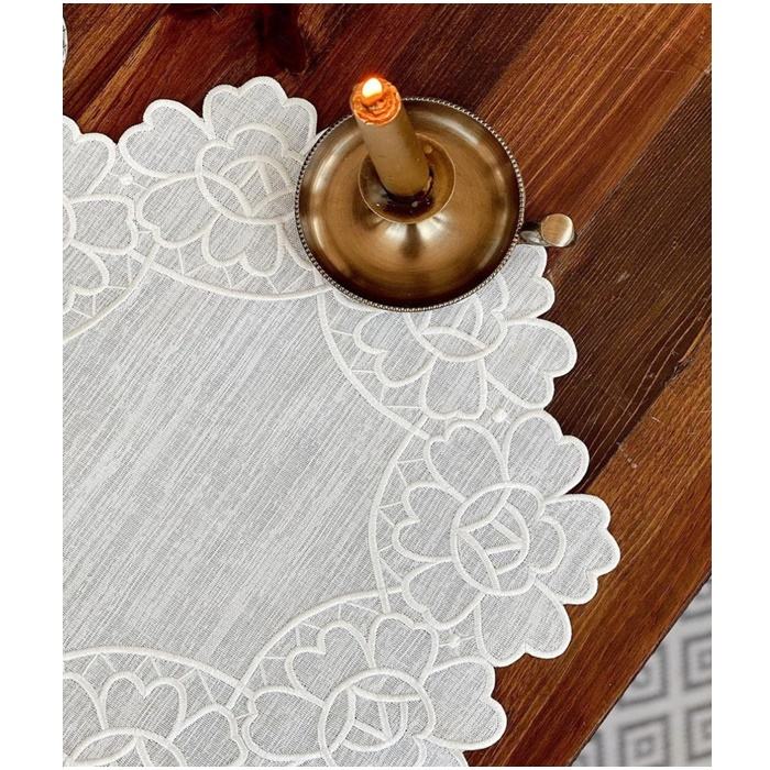 Manufacturer Embroidery White Flower Border Round Placemat for Home Restaurant High Quality White Linen Mats Table Decoration