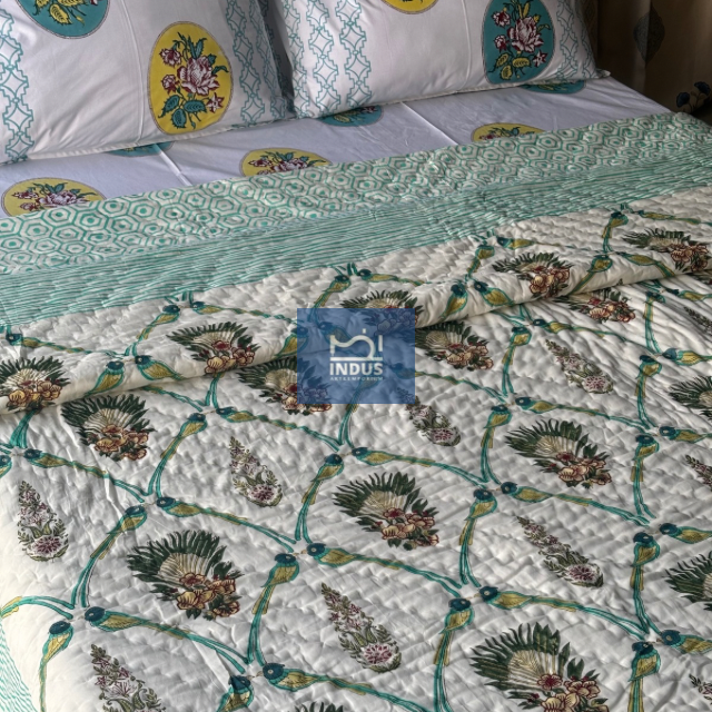Manufacturer Handmade Cotton Hand Block Floral Printed Blanket Wholesale Cotton Blanket with Bedsheet