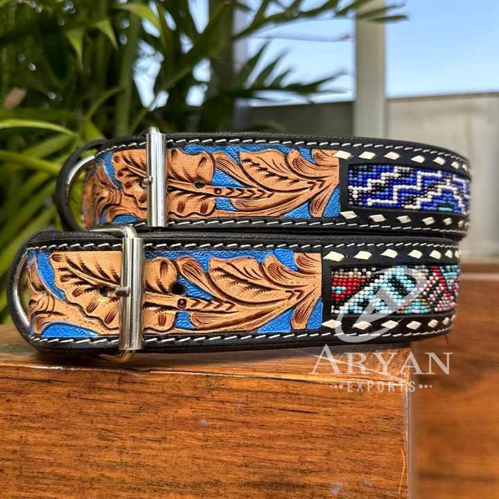 Product Name:Hand Tooled Leather Beaded Pet Collar