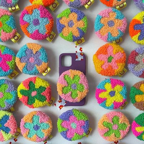 Manufacturer Hot Sale Customised Handmade Modern Plastic+Yarn Soft Flower Shaped Phone Holder Popping Socket Logo Custom Phone