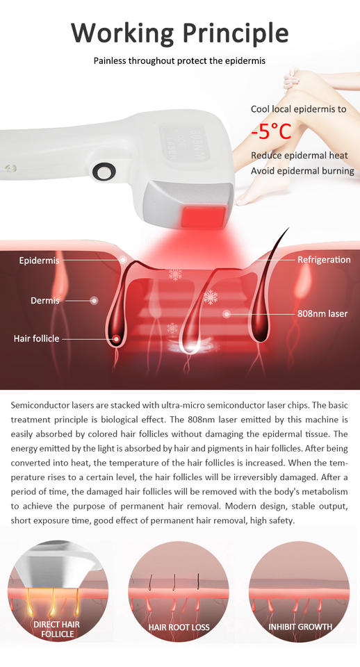Manufacturer Hot Sale White Laser Hair Removal Machine facial hair remover Skin Smooth Freezing Point hair removal machine
