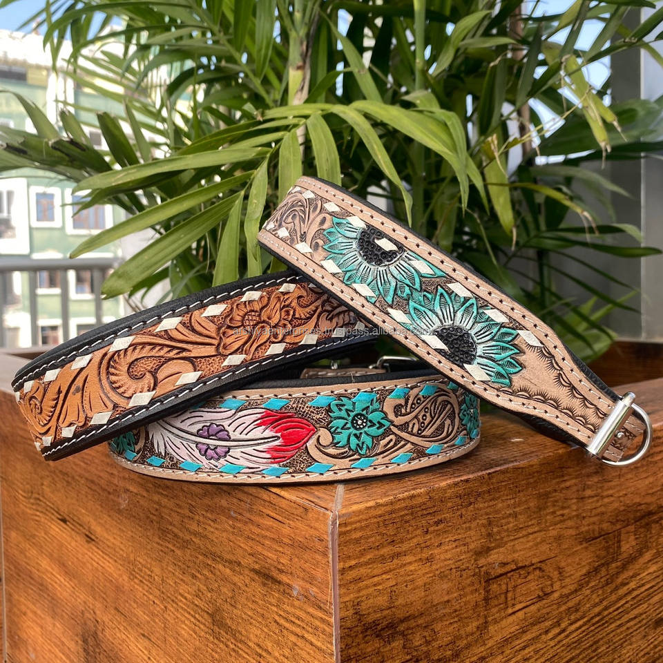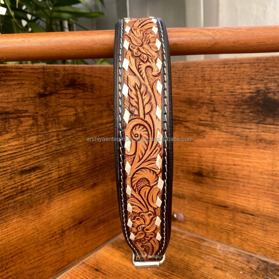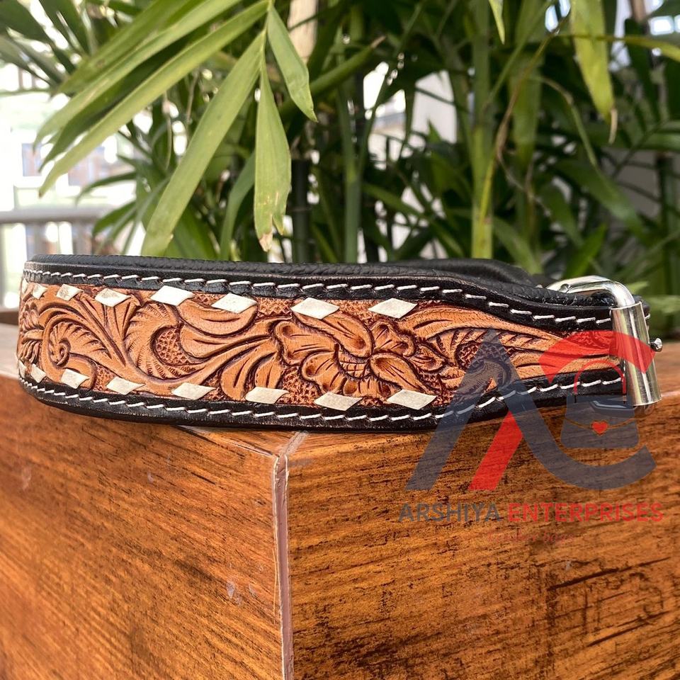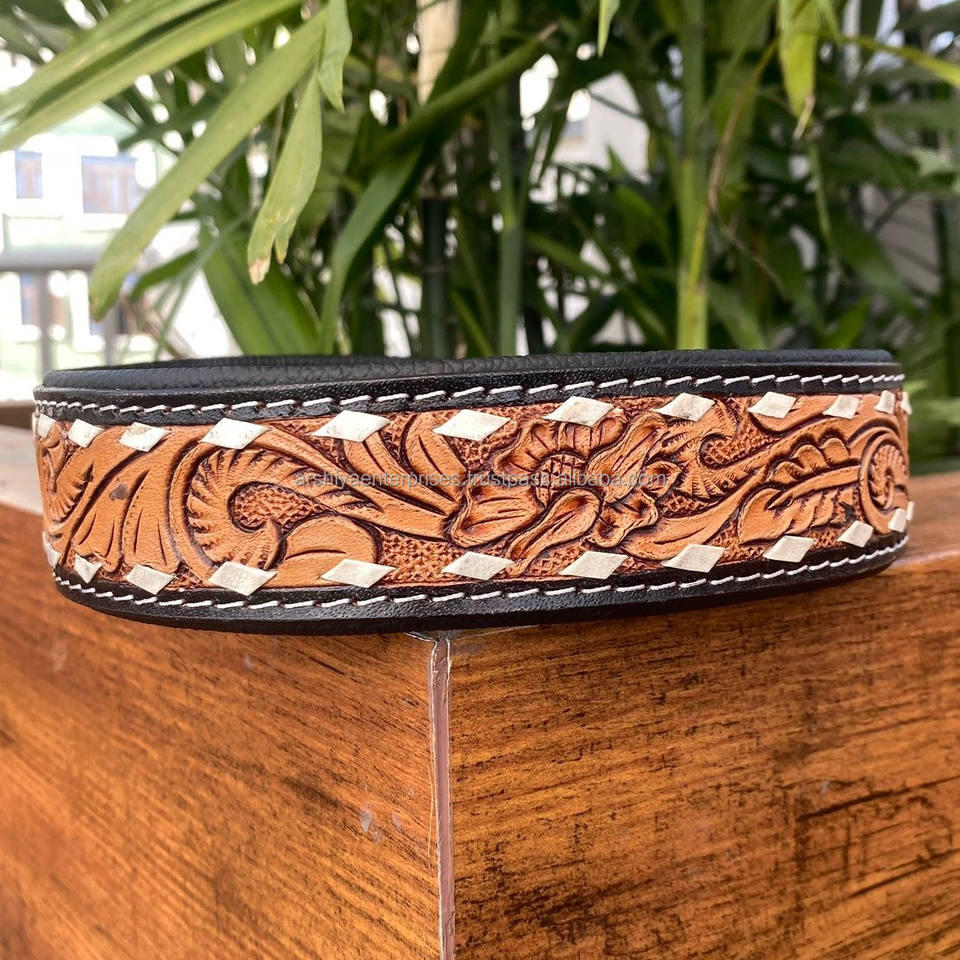 Product Name:Hand Tooled Leather Dog Collar