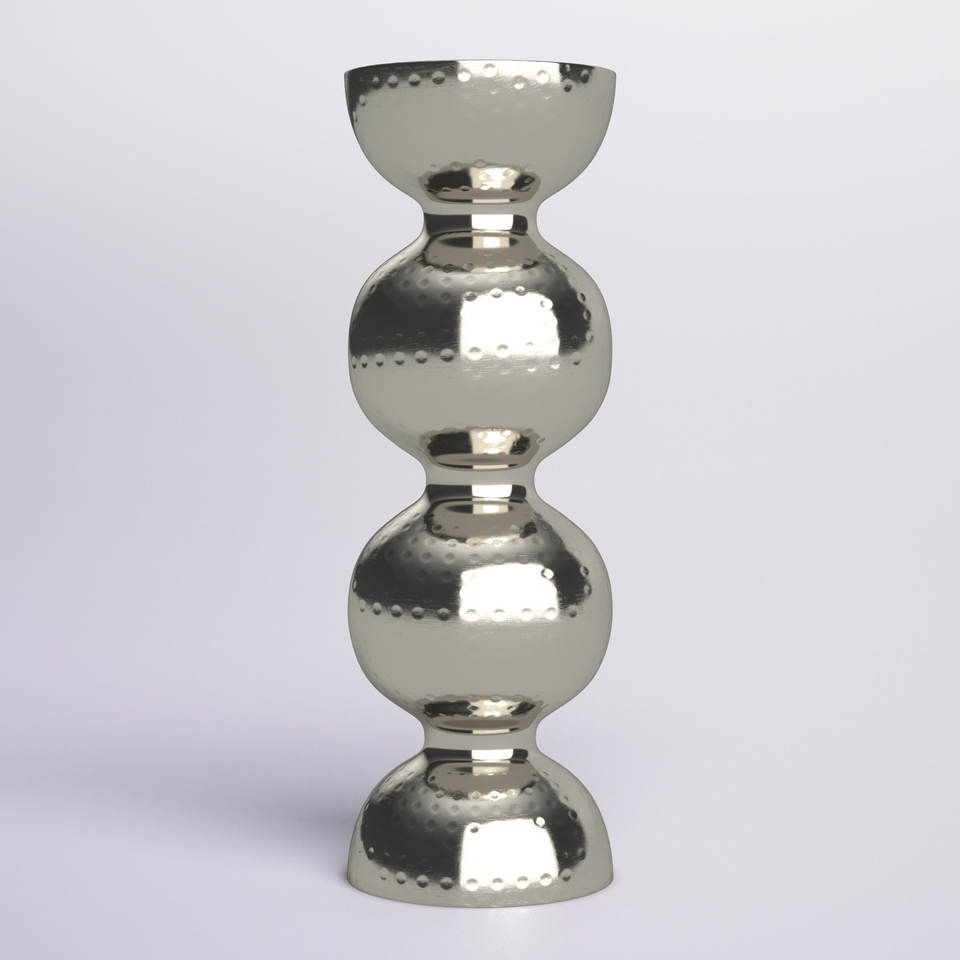 Manufacturer Luxury Double Tone Brown and White Wooden Candle Holder with Unique Christmas Pillar Design and Metal Base