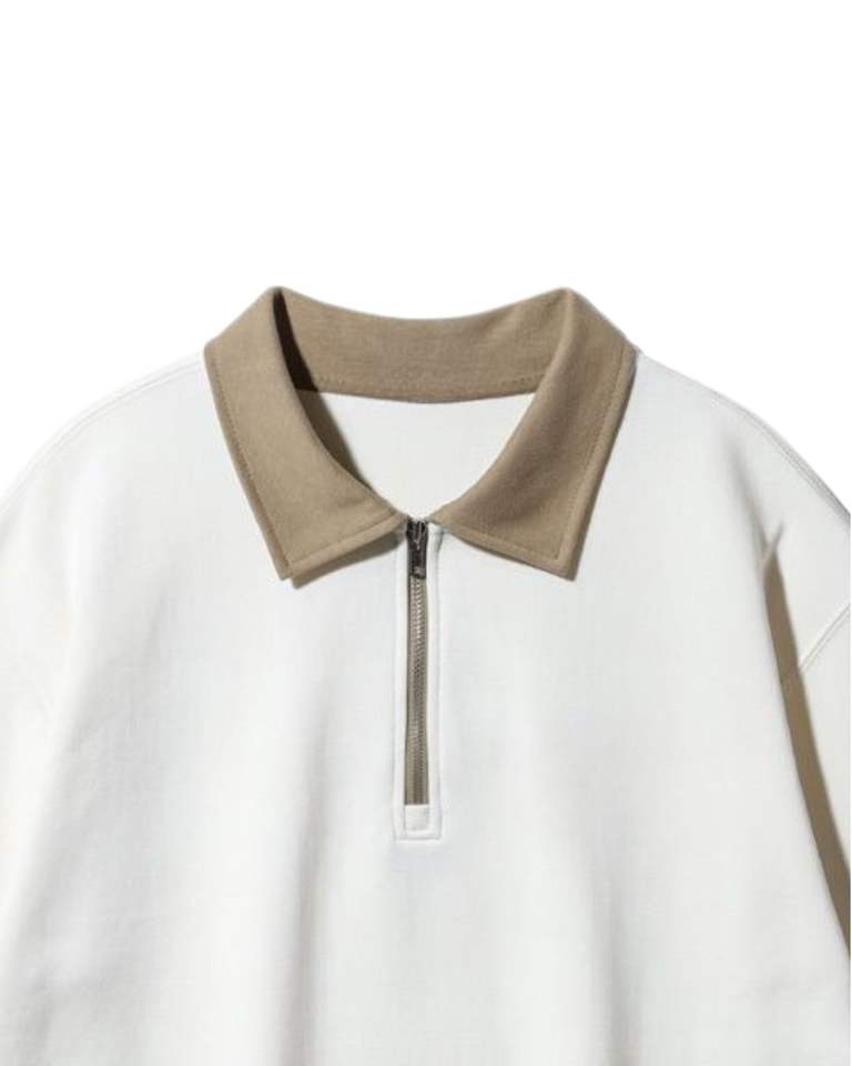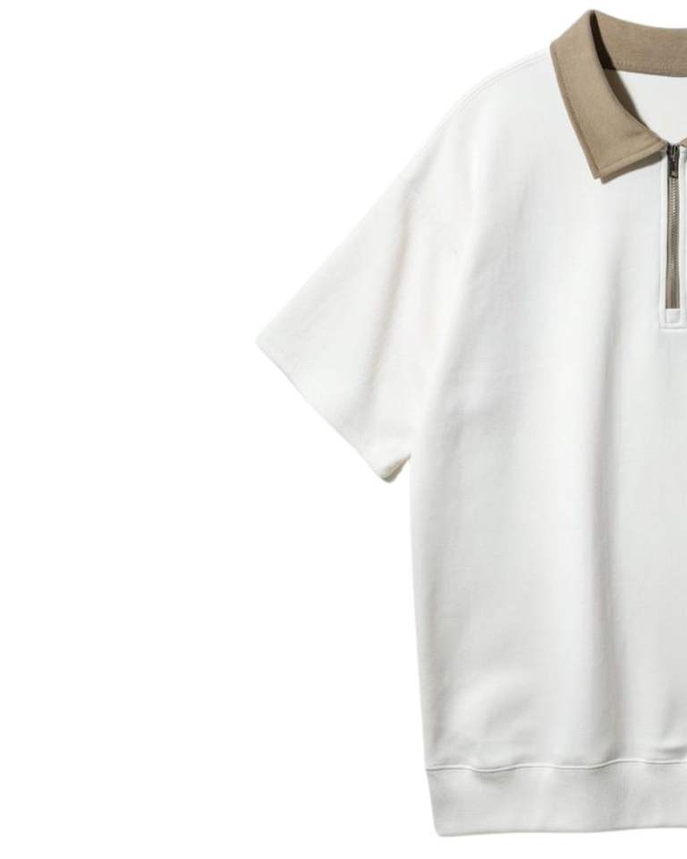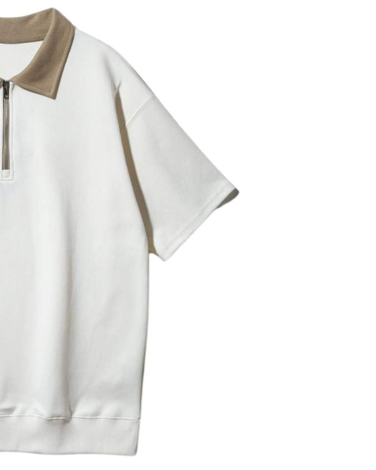 Manufacturer Men Half Zip Polo Sweatshirt White With Khaki Collar Casual Short Sleeve Pullover Custom Manufacturer OEM Wholesale