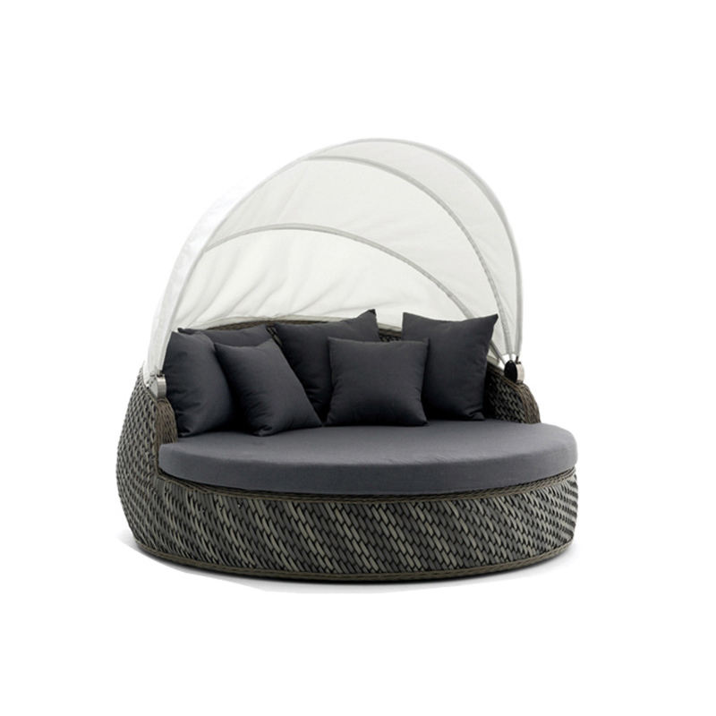Manufacturer Modern Round Daybed Outdoor Cushions Sun Bed Pool Garden Hotel Courtyard Rattan Sunbed with Canopy
