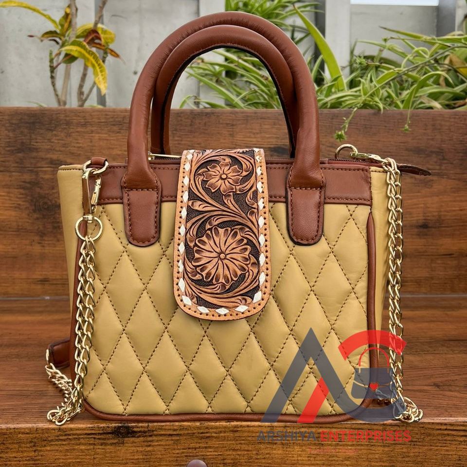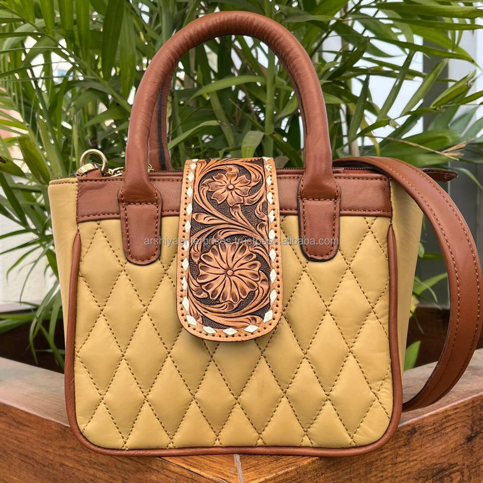 Manufacturer New Arrival Fashion Hand Tooled Quilted Leather Luxury Handled Crossbody Bags Trendy Custom Women's Shoulder Bags