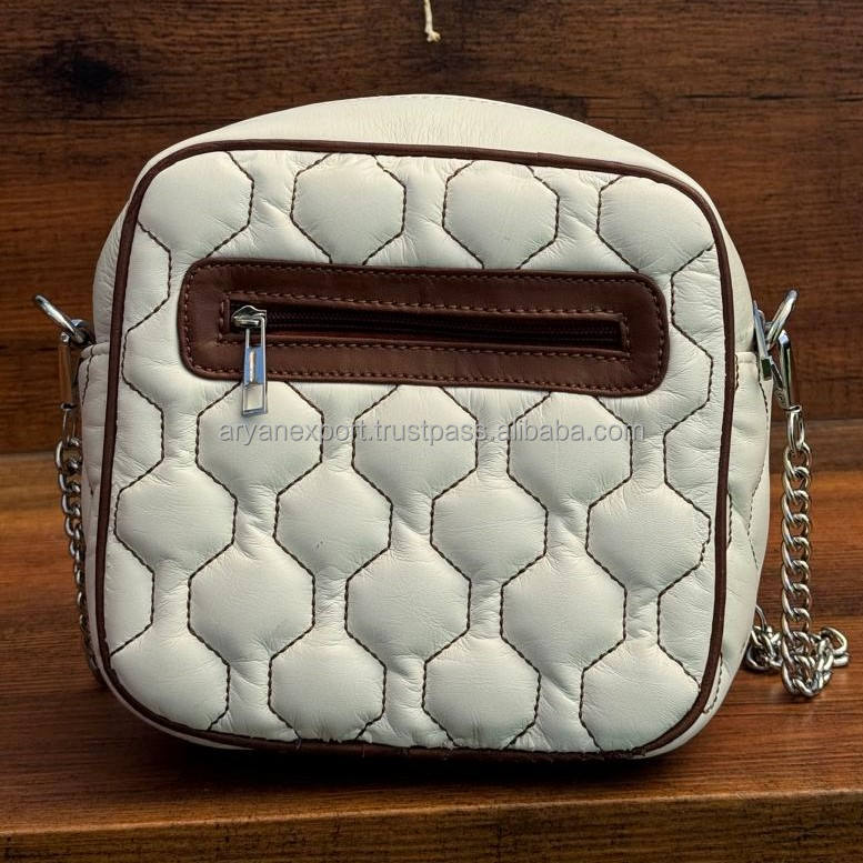 Manufacturer New Arrival Fashion Hand Tooled Genuine Quilted Leather Zipper Crossbody Bags Trendy Chain Shoulder Strap Handbags
