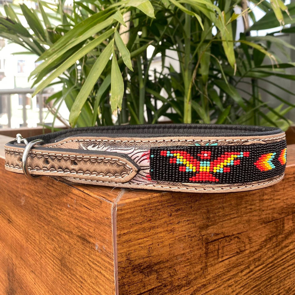 Manufacturer OEM ODM Custom Hand Tooled Leather Beaded Pet Collar Genuine Leather Heavy Duty Adjustable Training Dog Collars