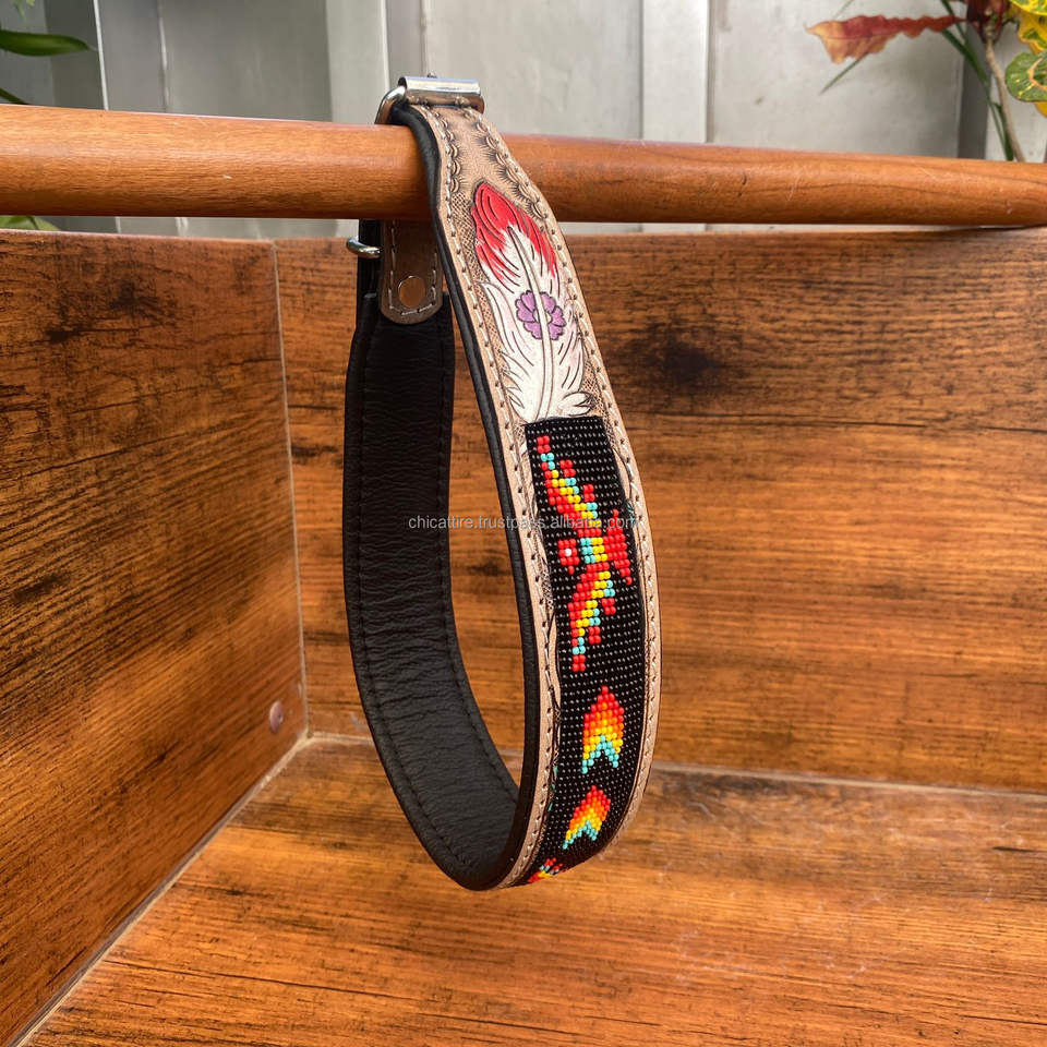 Manufacturer OEM ODM Custom Hand Tooled Leather Beaded Pet Collar Genuine Leather Heavy Duty Adjustable Training Dog Collars