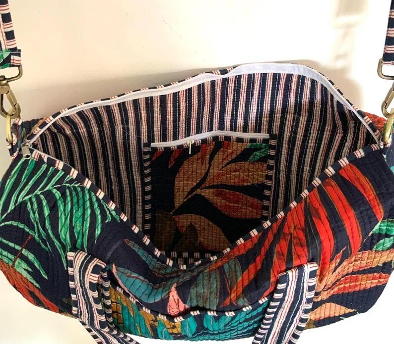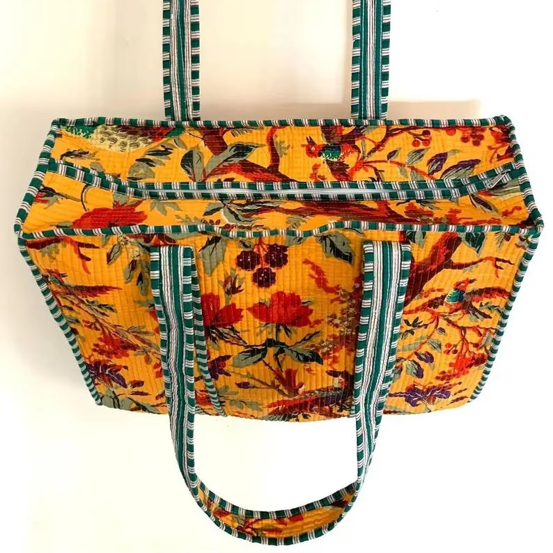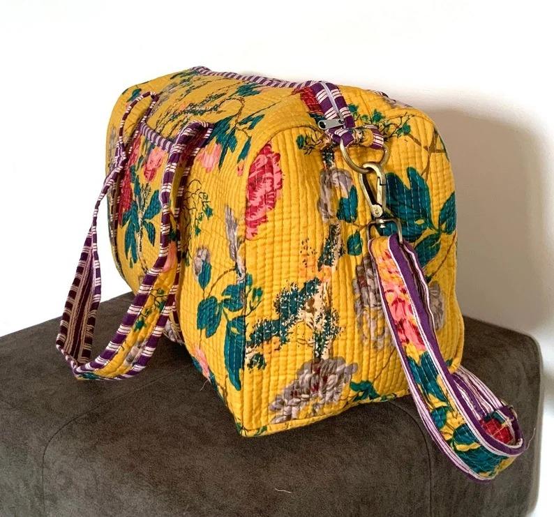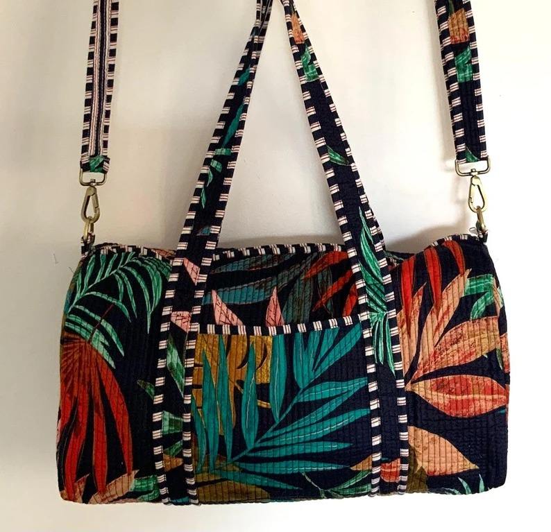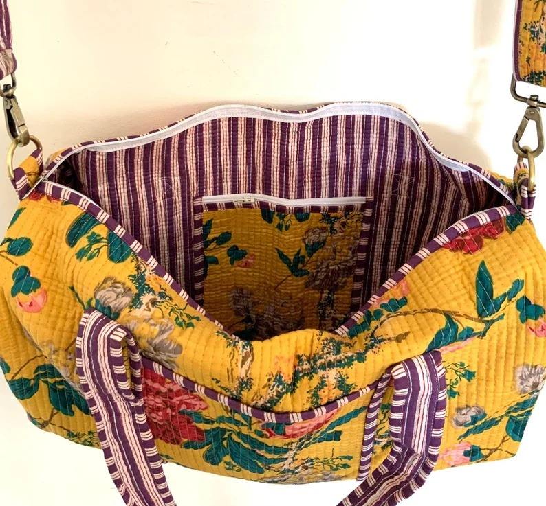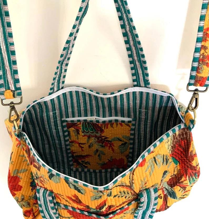 Manufacturer Quilted Patchwork Duffle Tote Shoulder Bag Cotton Eco friendly Sustainable Travel Yoga Shopping Beach Weekender bag