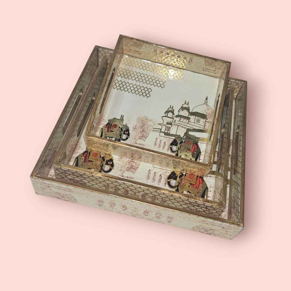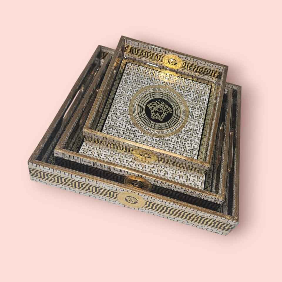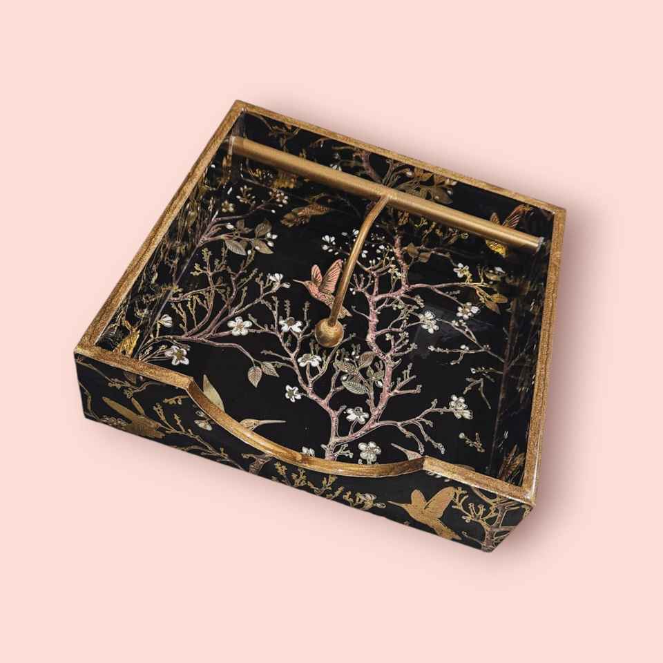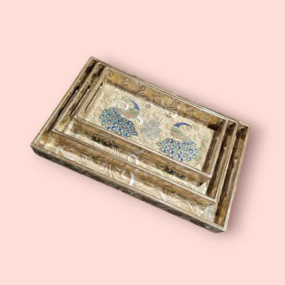 Manufacturer Rectangle Enamel Golden Printed Wood Table Serving Tray Wholesale Price From India New style Handmade Serving Tray