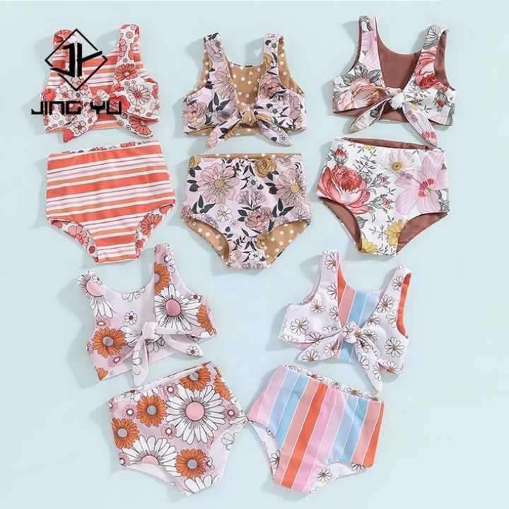 Manufacturer Reversible Recycled Swimwear Double Sided Printing Two Piece Baby Swimwear With Customized High Elasticity