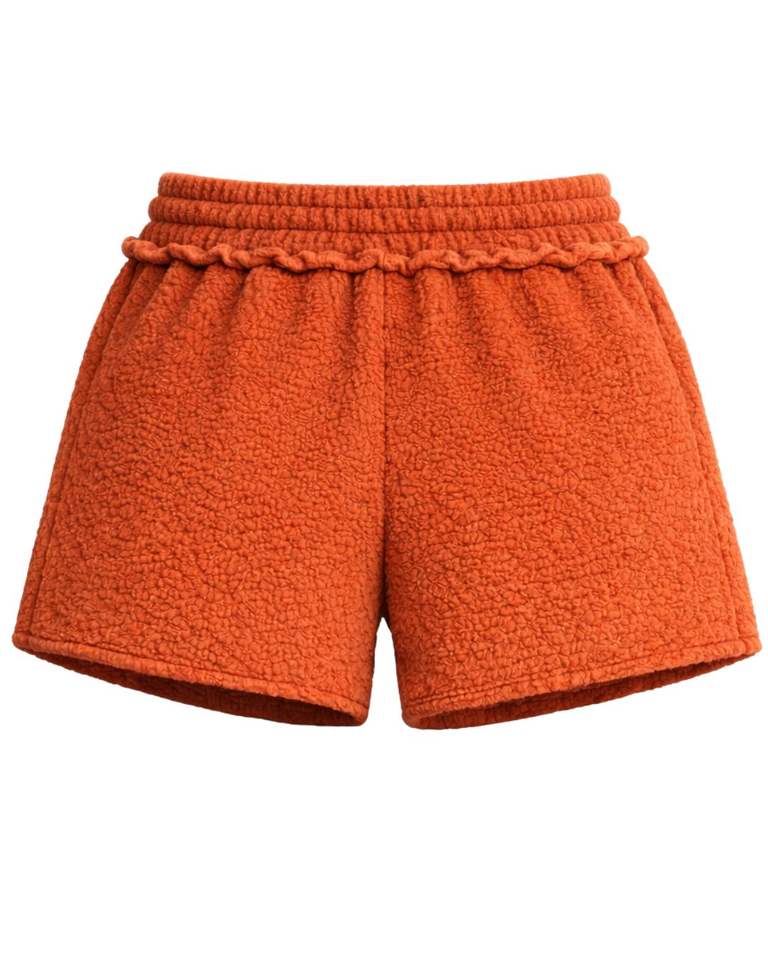 Manufacturer Rust Orange Sherpa Fleece Shorts Women Cozy Soft Plush Lounge Wear Elastic Waist Drawstring Casual Winter Comfort