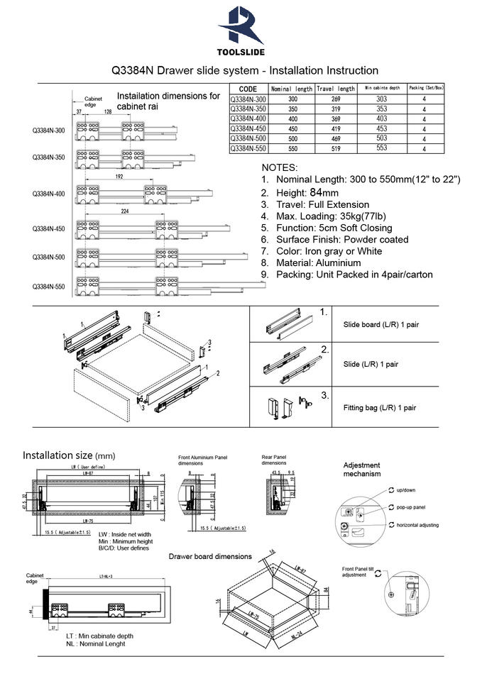 Full Extension, Easy Installation, 3-Fold, Silent, Soft ClosingFeature