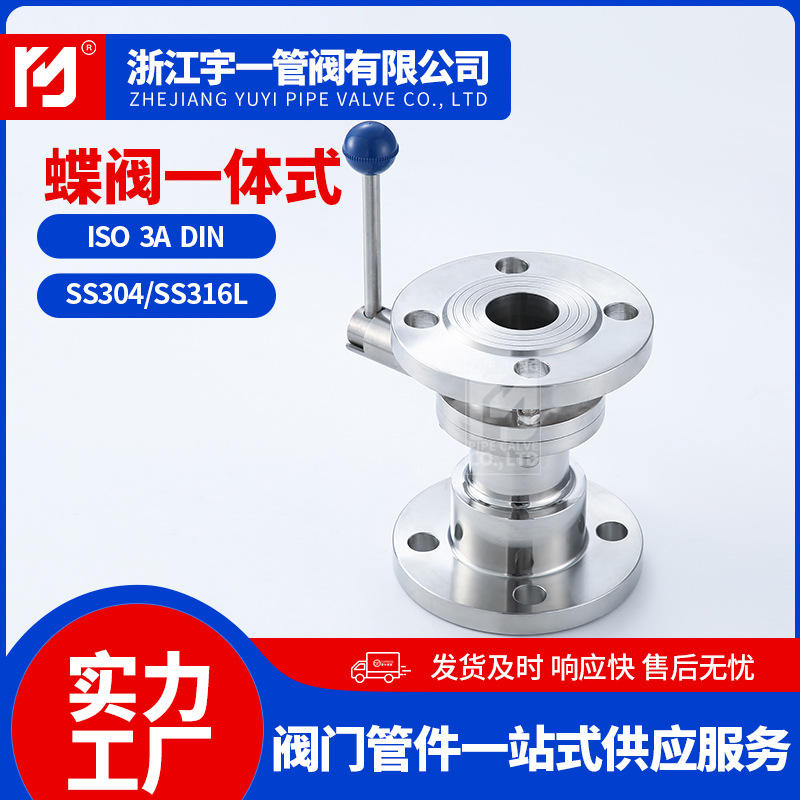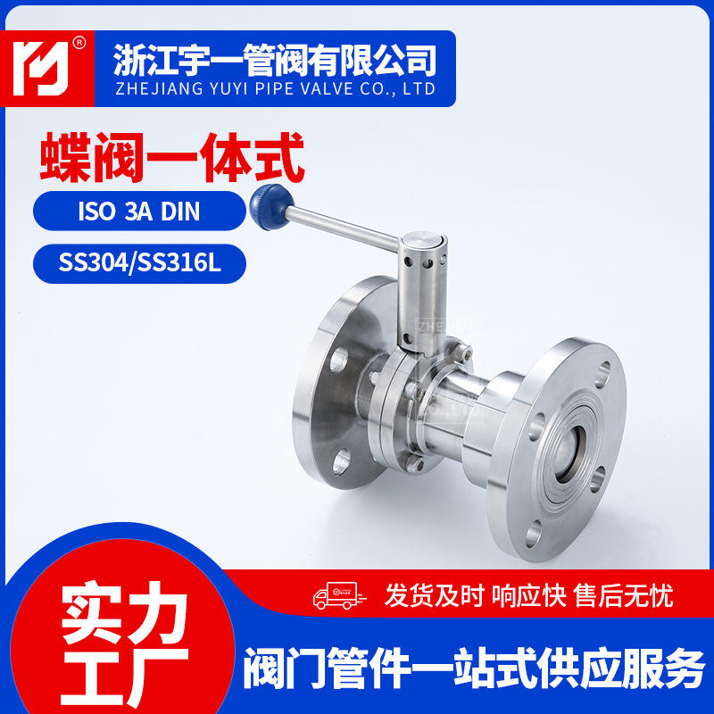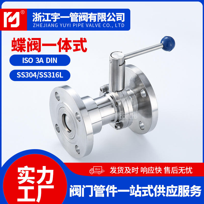 Manufacturer Supplied 304 Stainless Steel Integrated Manual Butterfly Valves Sanitary Flange Connection for Various Applications
