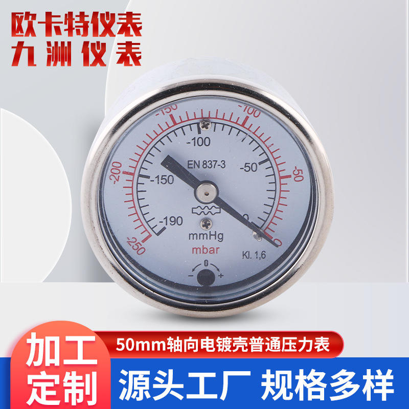 Manufacturer-Supplied 50mm Axial Pressure Gauges Electroplated Copper Fittings Standard Vacuum Gauges