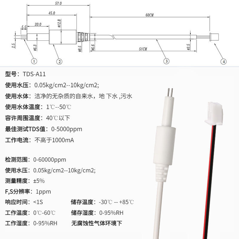 Manufacturer-Supplied TDS Probe Sensor for Water Quality Testing Conductivity Tester for IoT Water Purifiers