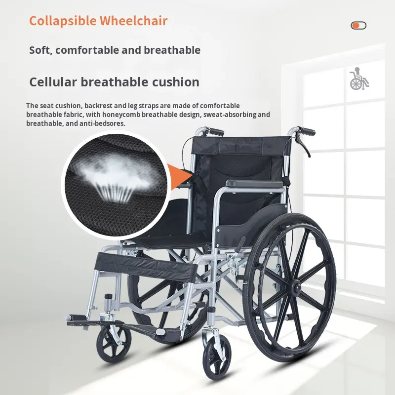 Manufacturer Supply Lightweight Portable Foldable Manual Wheelchair for the Disabled Manual Plastic Footrest Wheel Chair