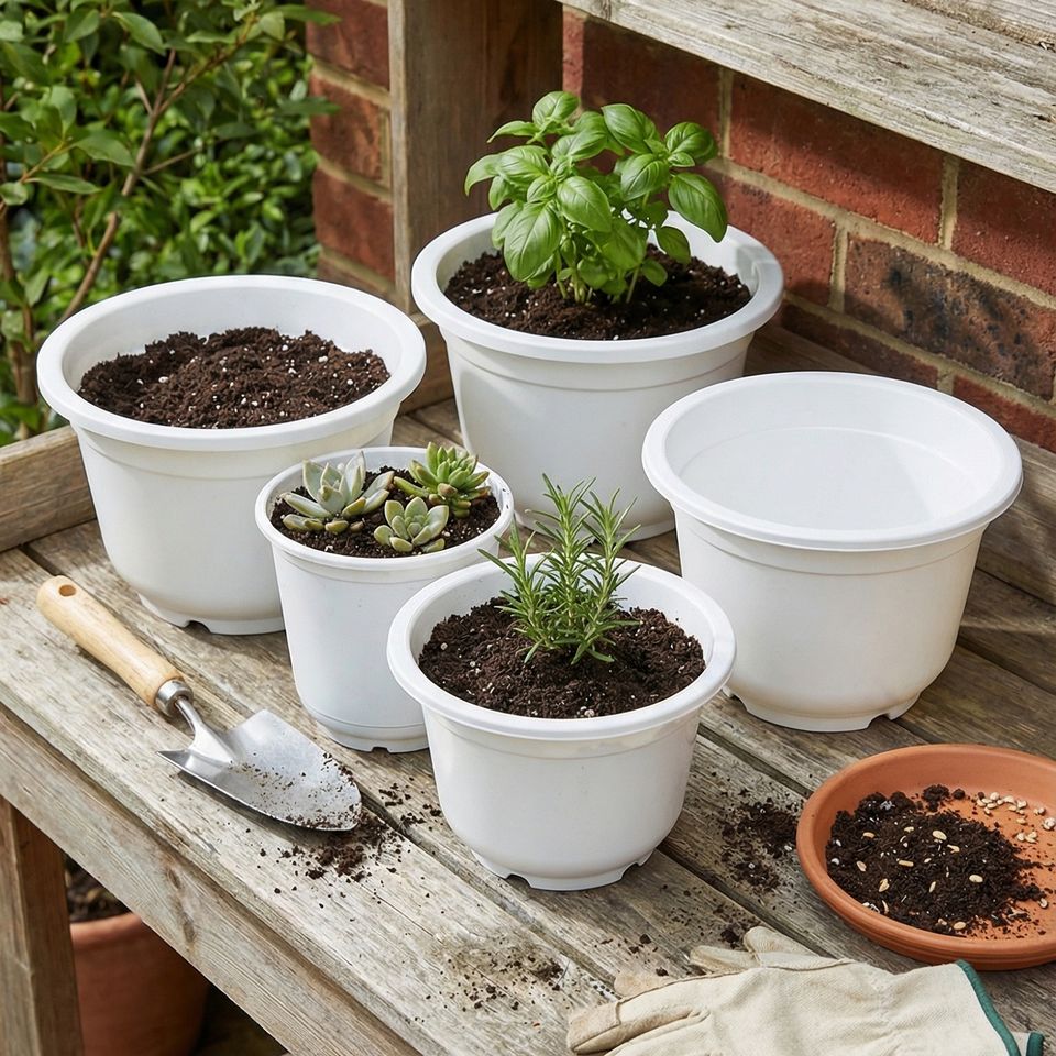 Manufacturer Supply White PP Plastic Plant Pot with Wide Edge, Eco Friendly Durable Flower Pot for Indoor Outdoor Plant Growing