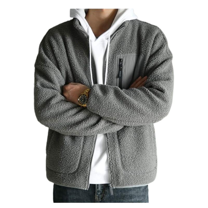 Manufacturer Soft Warm Autumn Hooded Stand Collar Solid Color Custom Mens Sherpa Fleece Jacket 100% Cotton Front Logo