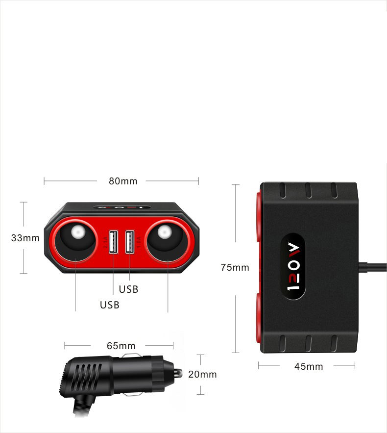 Manufacturer Wholesale 12V Dual USB Charger With Car Cigarette Lighter Plug Socket Adapter
