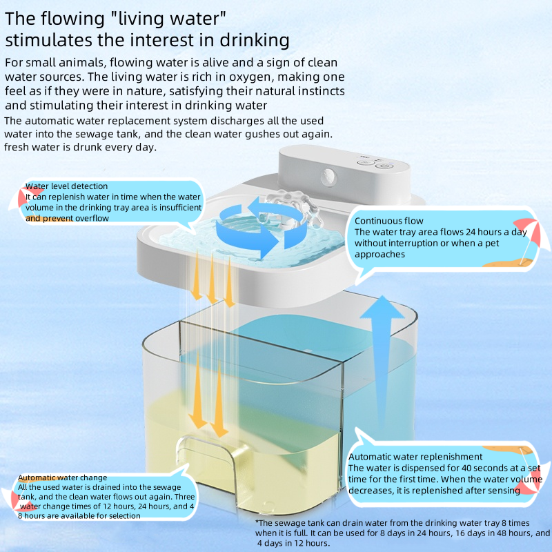 Automatic, Portable, Adjustable, Eco-Friendly, Durable, Easy To Clean, Food Grade Material, Feeding Schedule, Encourage Drinking, Transparent, StockedFeature