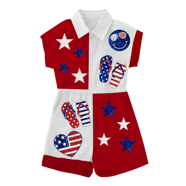 Manufacturer Wholesale 4th July National Day Customized Women's High Printed Rompers USA Flag Colors Casual Jumpsuits