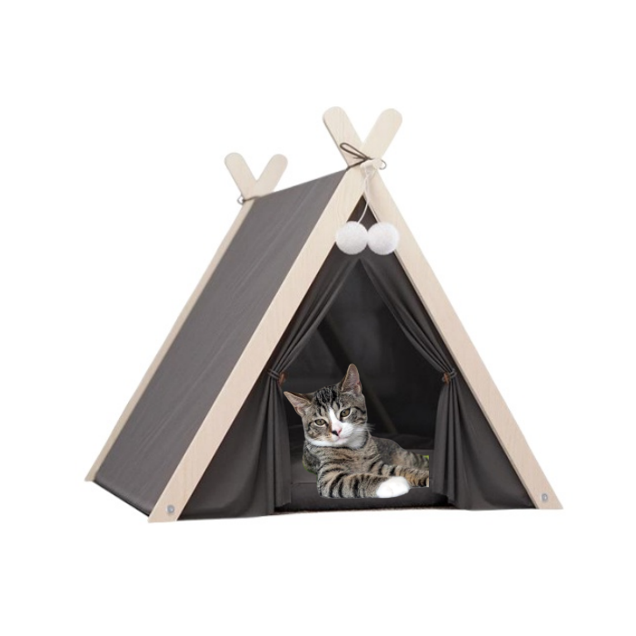 Cool Silk Wadding Solid Eco-Friendly Waterproof Outdoor Wooden Cat Bed Nest Teepee