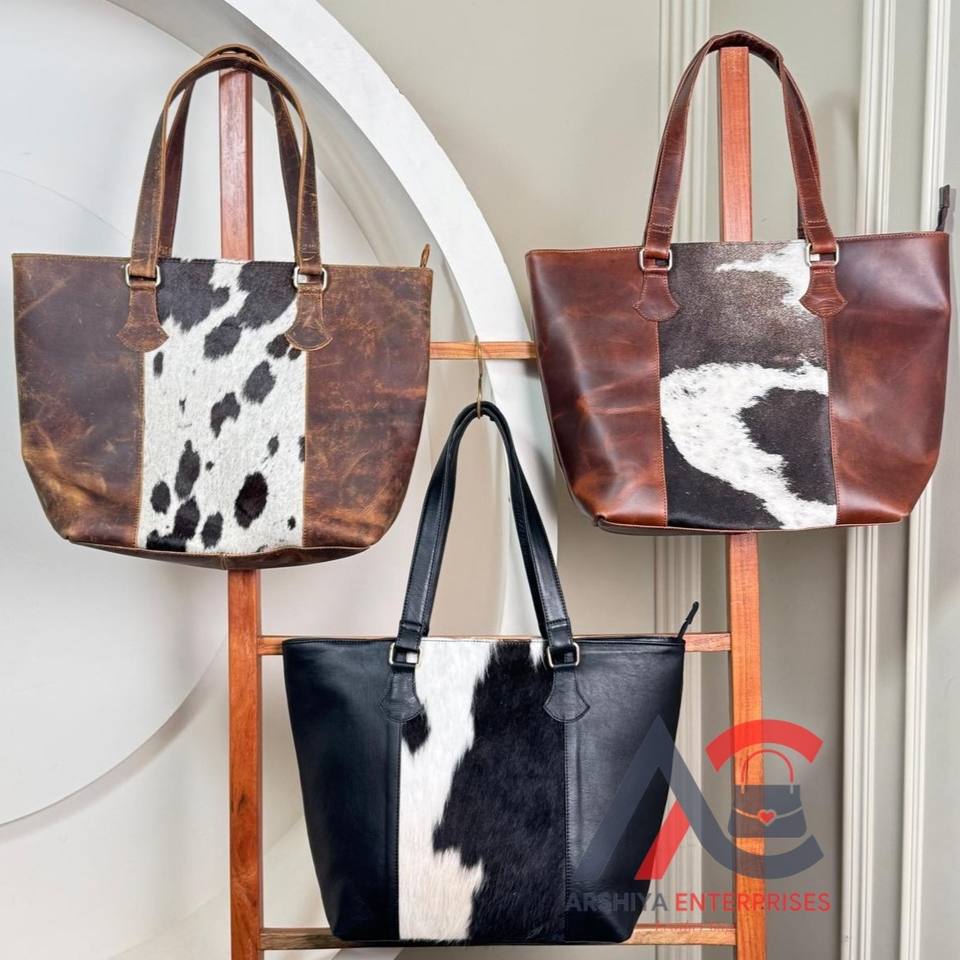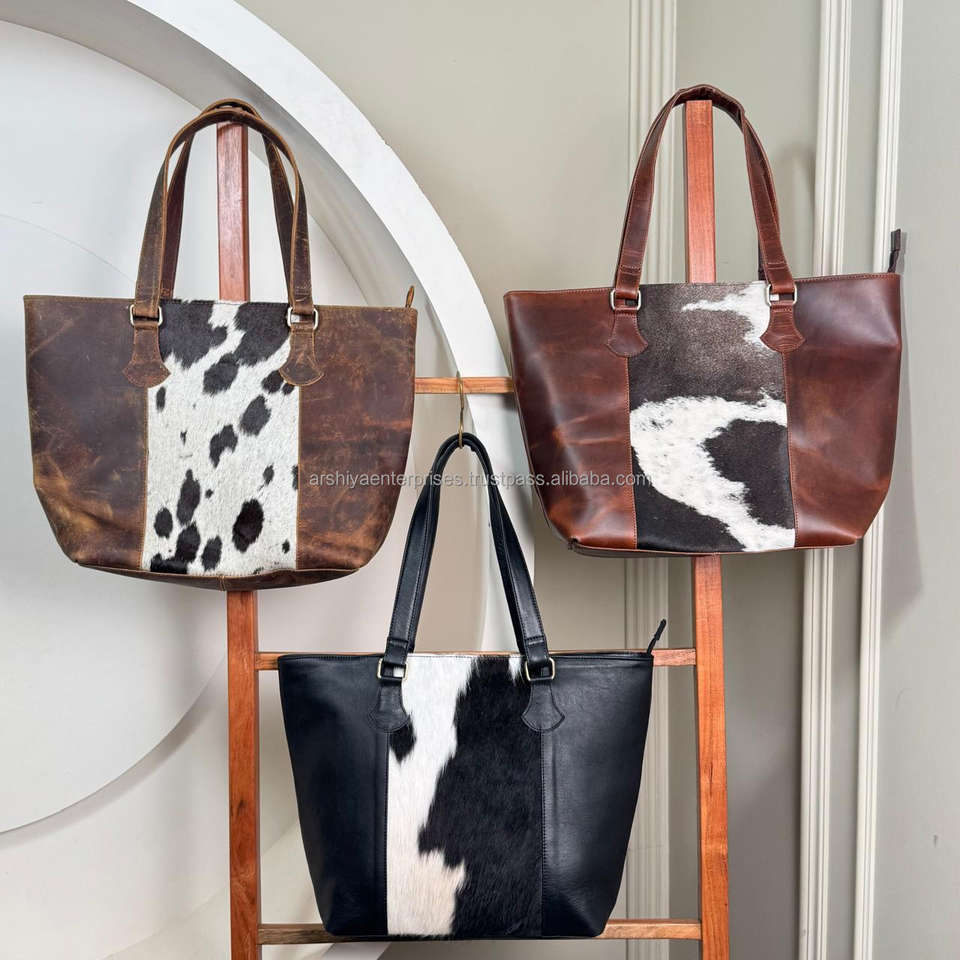 Manufacturer Wholesale Fashion Hair on Cowhide Leather Concealed Carry Large Tote Bag Genuine Leather Shoulder Purse for Women's