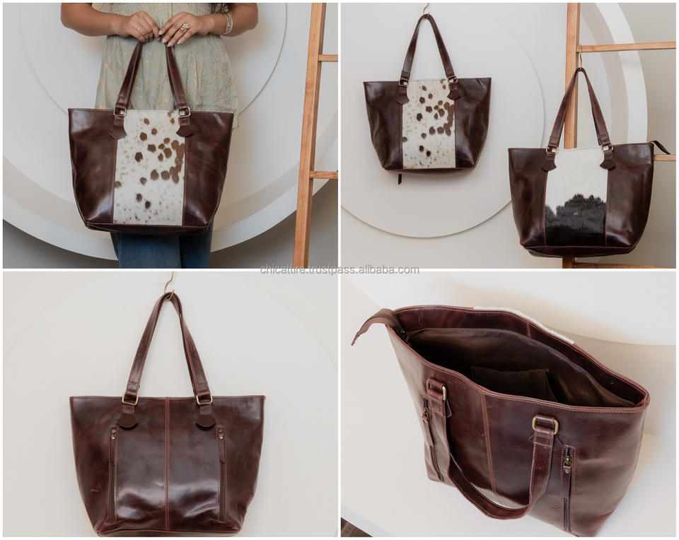 Manufacturer Wholesale Fashion Hair on Cowhide Leather Concealed Carry Large Tote Bag Genuine Leather Shoulder Purse for Women's