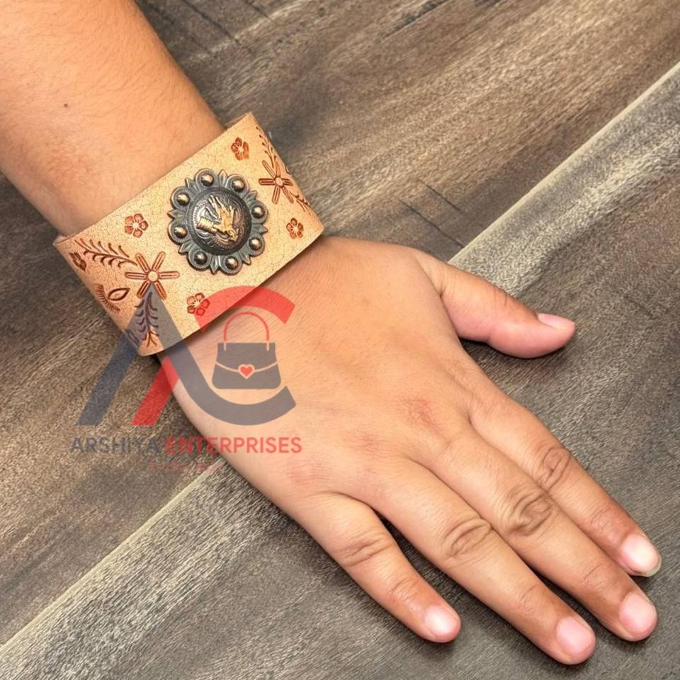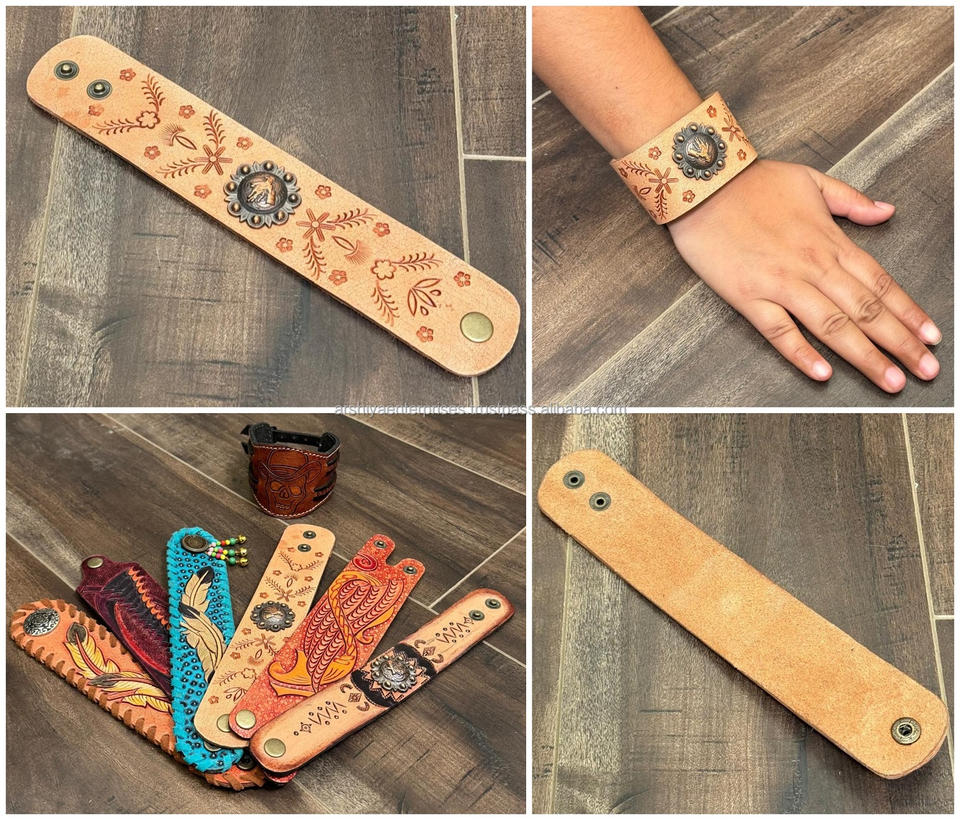 Manufacturer Wholesale Hand Tooled Leather Cuff Bracelet with Cameo Concho Custom Engraved Genuine Leather Bracelets Men & Women
