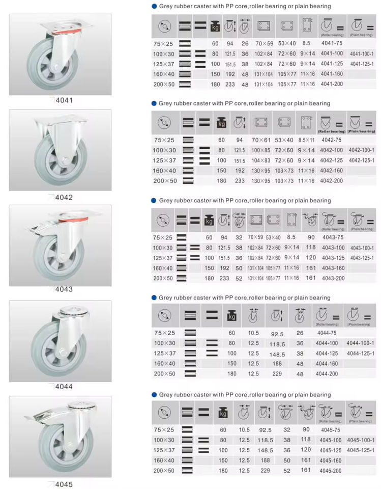 Manufacturer Wholesale Industrial Grade Roller Bearing Caster Wheels Grey Rubber + PP Core Quality Guarantee Casters for