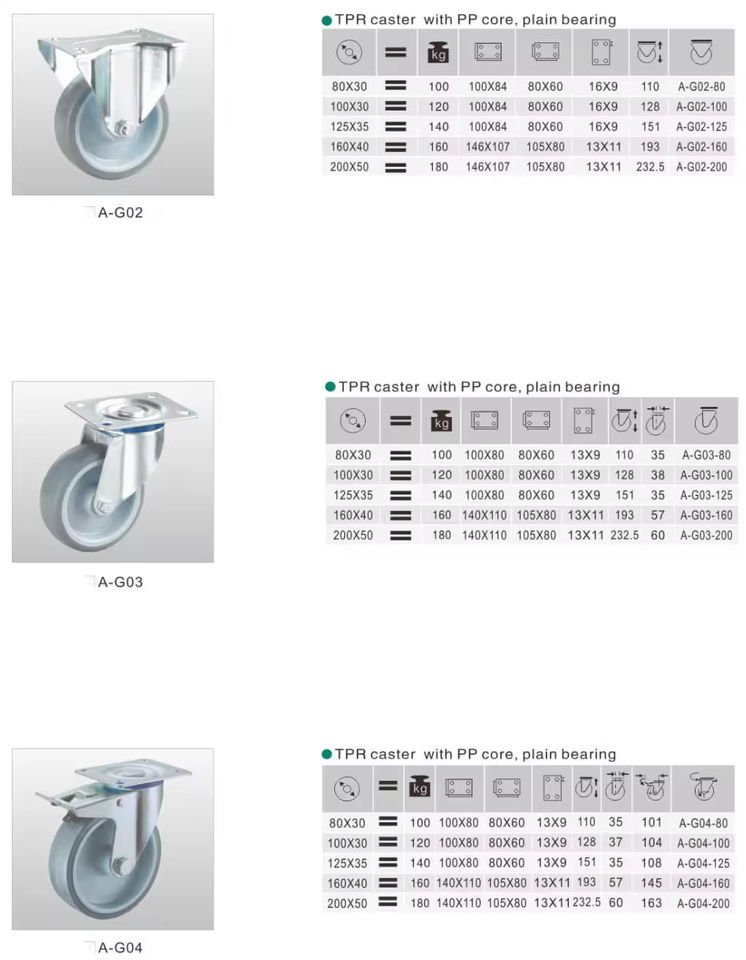 Manufacturer Wholesale Industrial TPR Caster Wheels with PP Core Plain Bearing Swivel Brake Durable Design