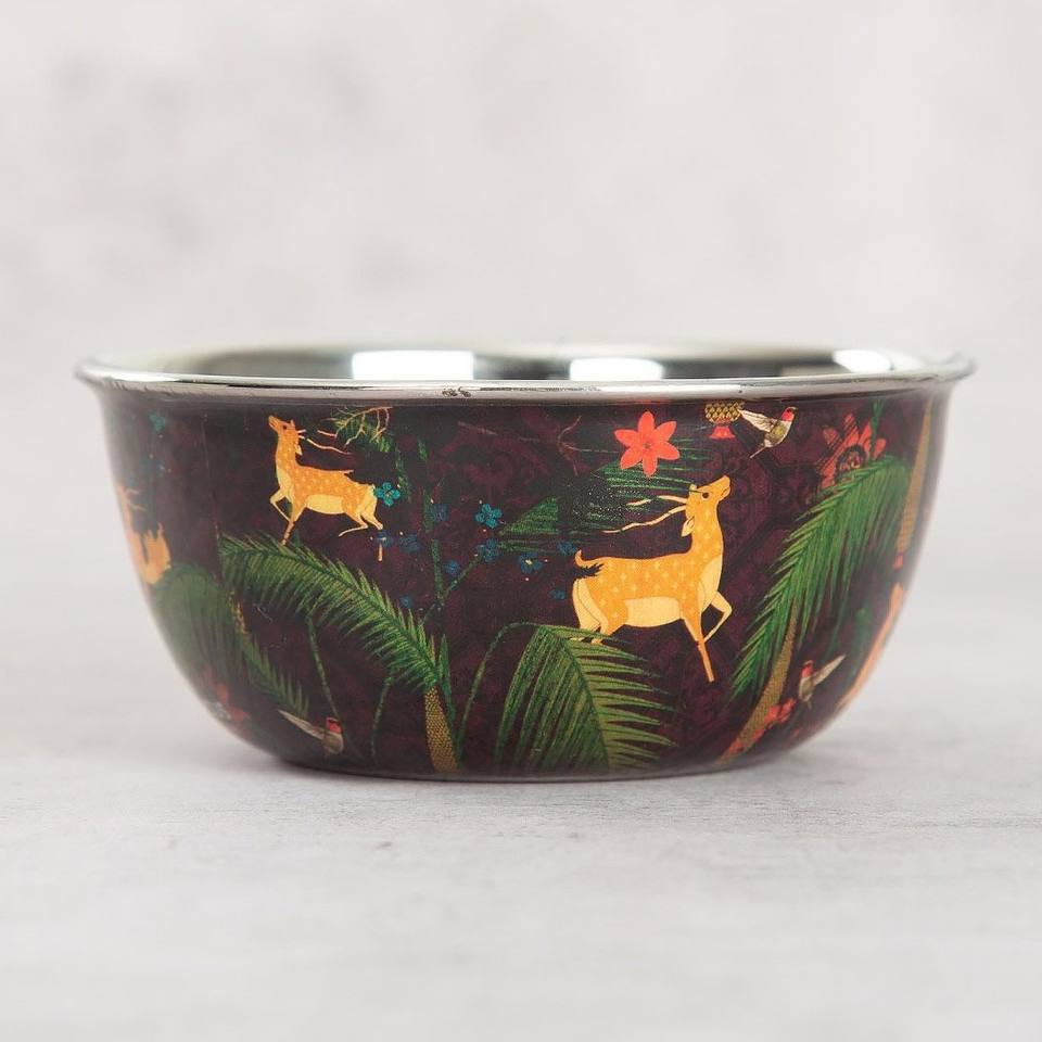 Manufacturer Wholesale Large Steel Bowl Green Rainforest Deer Design Enameled Serving Party Wedding Occasions Made Iron Metal