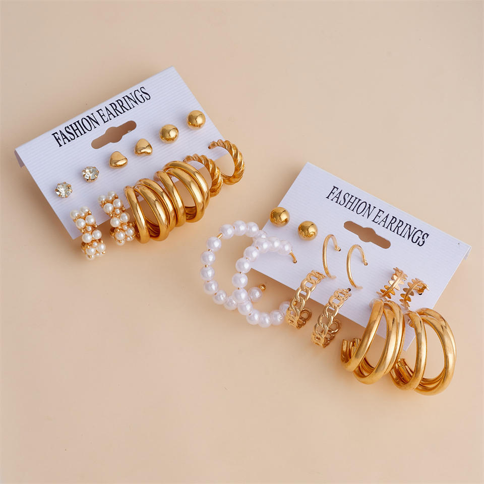 Manufacturer Wholesale Price Gold Geometric Women's Earrings Set Fashion Pearl Earrings and Accessories