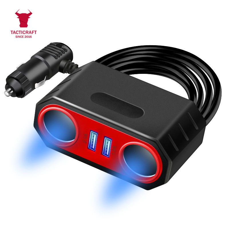 Manufacturer Wholesale Quick Charging Two-Car Charger Adapter with USB Socket 12-24v Voltage Lighter Splitter Adapter
