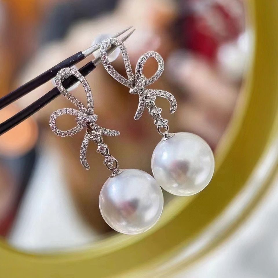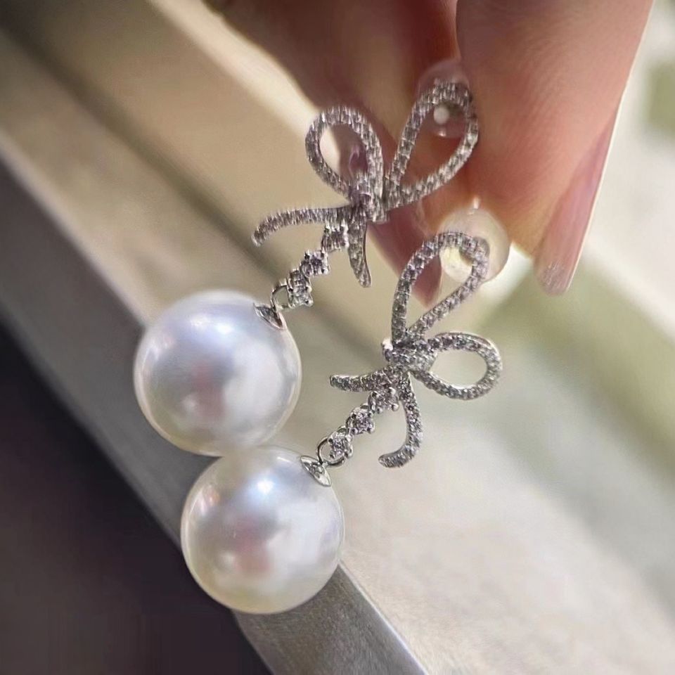 Manufacturer Wholesale S925 Pure Silver Dangle Earrings with Natural Pearl 10-9MM Round Face Flawless Matching Gift Box