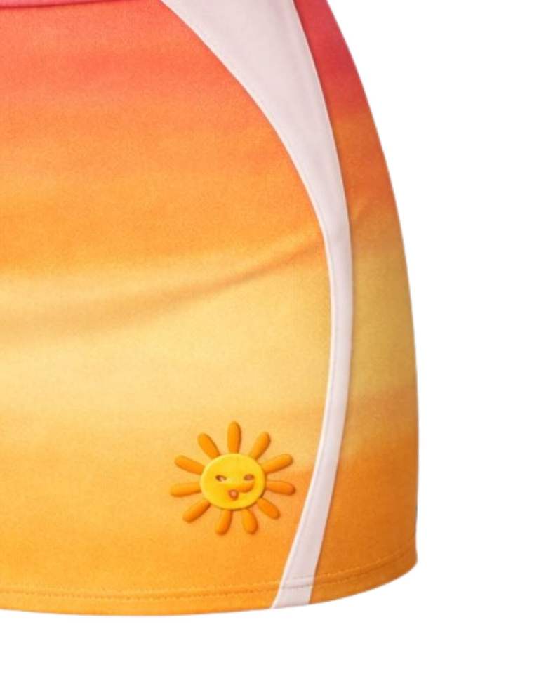 Manufacturer Women Pink Orange Gradient Two Piece Skirt Set Sleeveless Crop Top High Waist Mini Skirt Stretch Summer Outfit