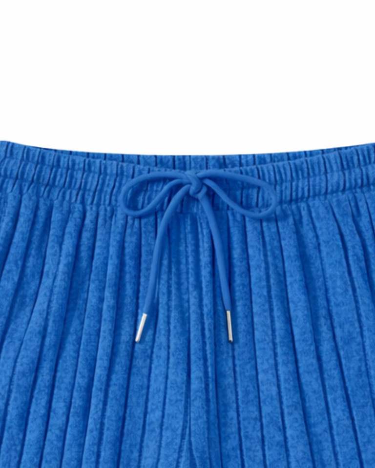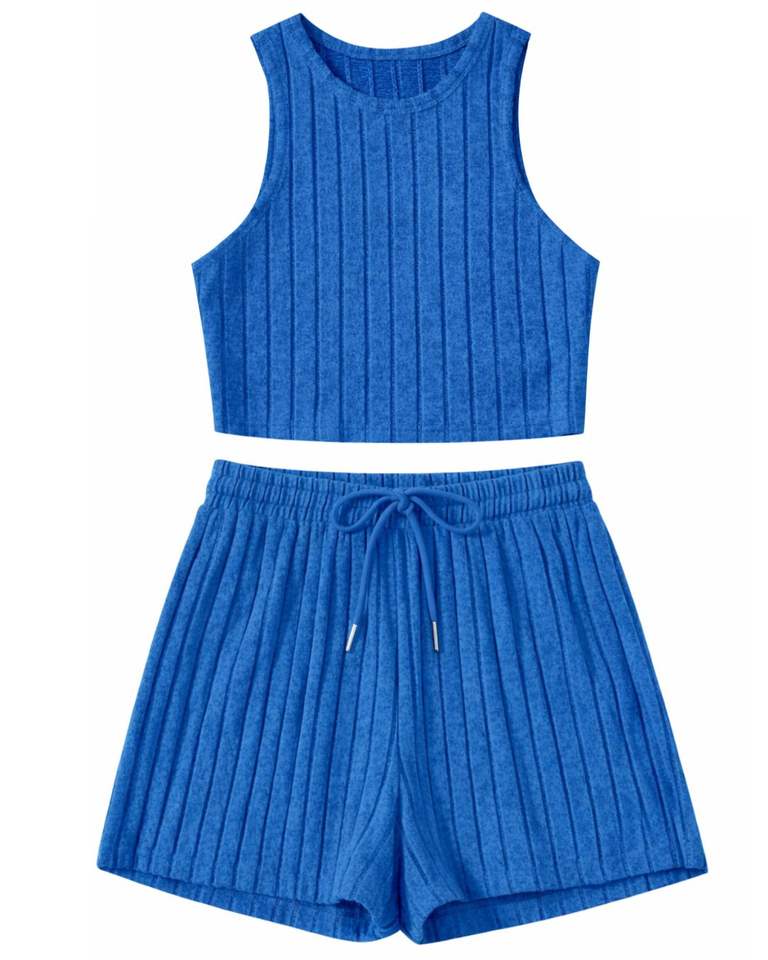 Manufacturer Women Ribbed Crop Tank Top & Drawstring Shorts Set Royal Blue Casual Lounge Two Piece Outfit Custom Wholesale OEMS