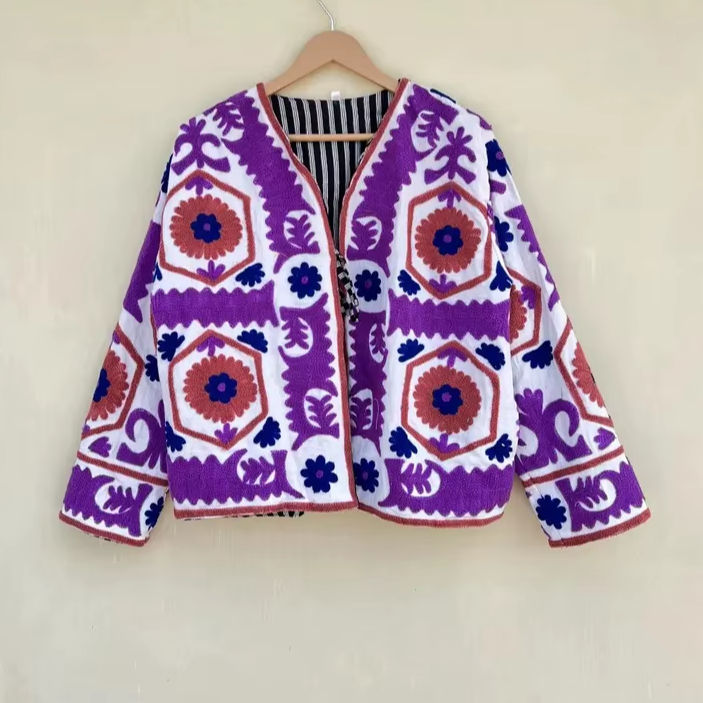 Manufacturer and Wholesaler of Handmade Suzani Embroidered Cotton Jacket kimono Robe Short Winter Coat