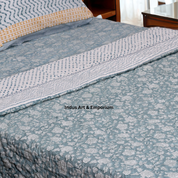 Manufacturer Handmade Cotton Hand Block Floral Printed Blanket Wholesale Cotton Blanket with Bedsheet