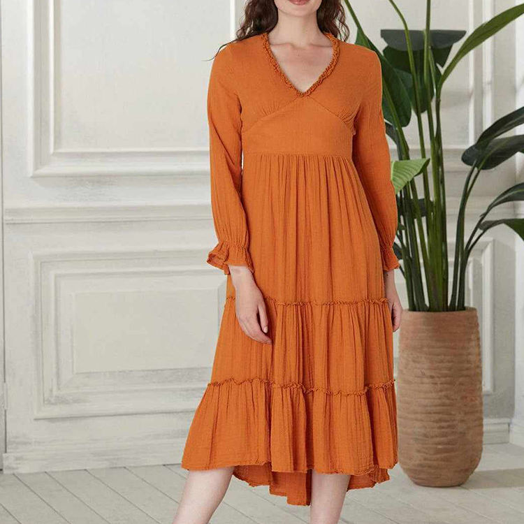 Manufacturer-made custom floral V-neck multi-pleated backless summer dress, luxurious cotton midi dress